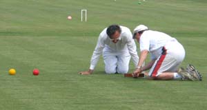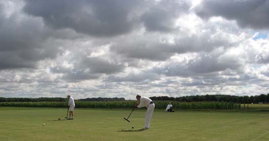 The second AC tournament on Wrest Park’s new lawns attracted a small entry, the home club’s members being augmented by visitors from Letchworth, the West Country and Sweden. It was won by the manager, Rod Ashwell, who finished equal with David Marsh on four wins from five games having won the game between them. David did not go unrewarded, having his handicap reduced from 1 to ½. Apart from the lightest and shortest of showers the sun shone all weekend, and the received opinion was that the lawns were playing much better than at the tournament a month previously, and this in spite of the fact th