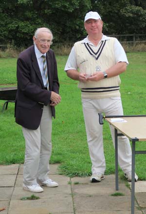 John also featured in possibly the best game of the tournament against fellow Wrest Parker George Collin. John hit his own tice and went to penult. George then hit in from distance and went to rover. John joined up after a failed stop shot approach to hoop 4 from near corner 4, whereupon George hit in and went round again, did the rover peel and used one opponent ball to cannon partner near the peg before roqueting the other and finishing, leaving John’s bisques standing idle.